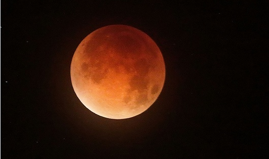 “血色月亮”一般出現在月全食的時(shí)候。當月球、地球、太陽(yáng)連成一線(xiàn),月球進(jìn)入地球的陰影之中。這時(shí),其他顏色的光散射于大氣層中,幾乎僅有紅色光抵達月球表面。因此,呈現在人類(lèi)眼前的月球顏色便如同血色一般。